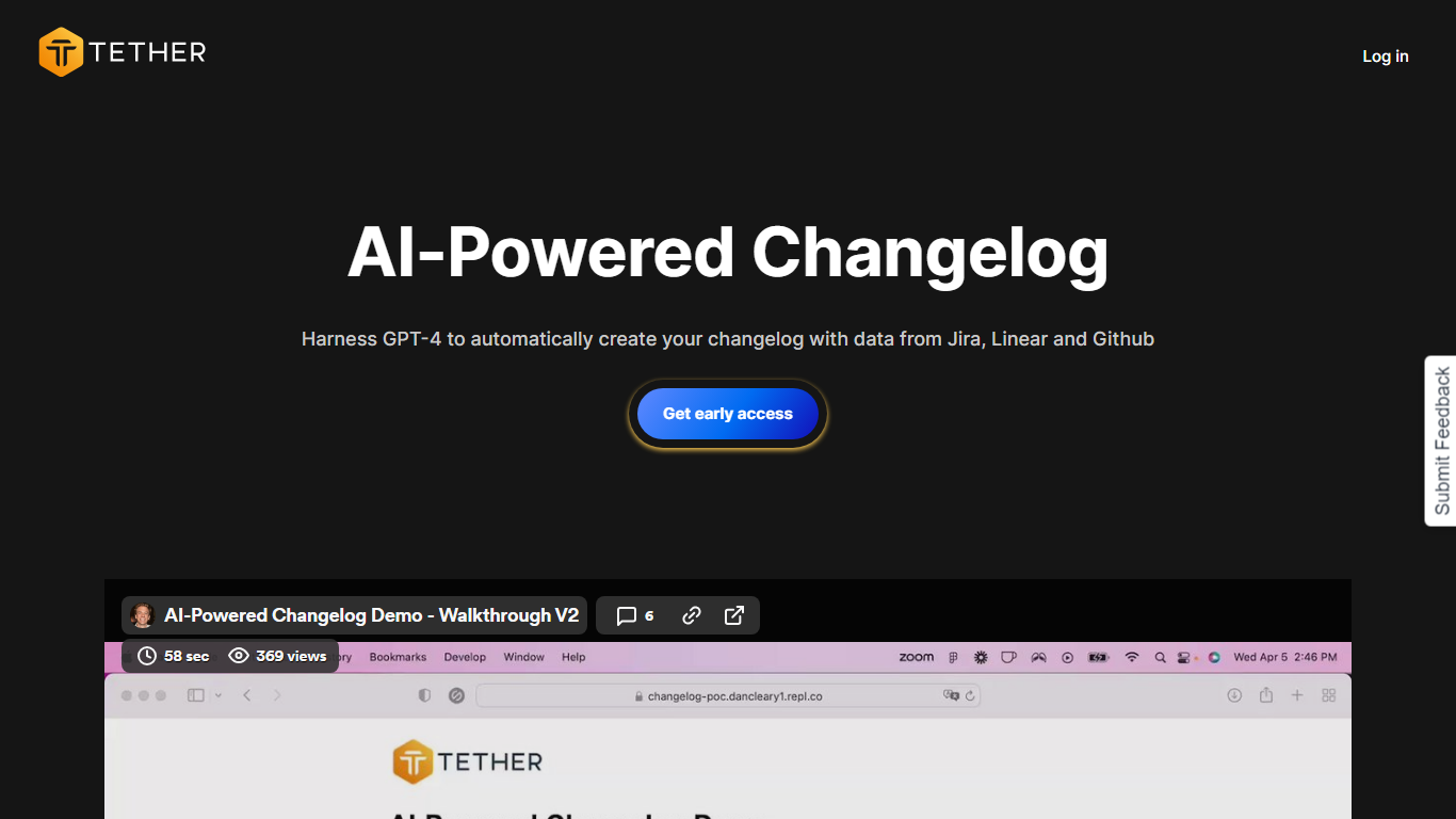 Unlock the power of AI for your software development with Tether’s AI-Powered Changelog tool. This seamless solution integrates with your favorite tools like Github, Jira, and Linear to automatically pull in the latest product developments. Once connected, let the advanced capabilities of GPT-4 take over as it intelligently generates a changelog based on your commits and updates.