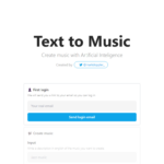 Unleash your creativity by transforming the ideas in your mind into harmonious soundscapes with Text to Music. Leveraging the power of Artificial Intelligence, Text to Music enables you to write a description in English and watch as it orchestrates an audio masterpiece tailored to your specifications. Choose the perfect length for your composition, ranging from 1 to 30 minutes, and let the magic of AI generate your personal audio. Whether for public audios or your private collection, your imagination is the only limit. Get started today by sending a login email to access your account, and dive into the musical world created by @markdoppler.