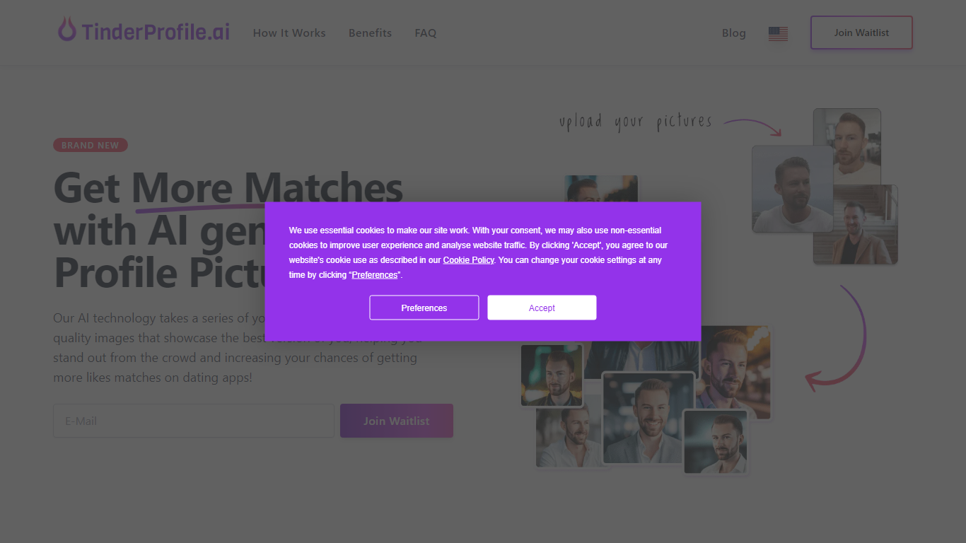 Elevate your online dating experience with TinderProfile.ai, the revolutionary AI-powered service designed to create the ultimate profile pictures for your dating app! By simply uploading your favorite selfies, our advanced AI technology captures the nuances of your facial details and expressions, crafting a series of high-quality profile images that will help you shine online. With these personalized, authentic-looking photos, you’ll enhance your chances of getting more likes and matches.