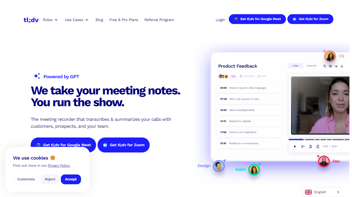 Discover the power of tldv with our GPT-powered meeting software. Whether you’re conducting online meetings, presentations, or webinars, our software ensures seamless collaboration and productivity. With our advanced capabilities, you can record, transcribe, highlight, and easily share your meetings with participants.