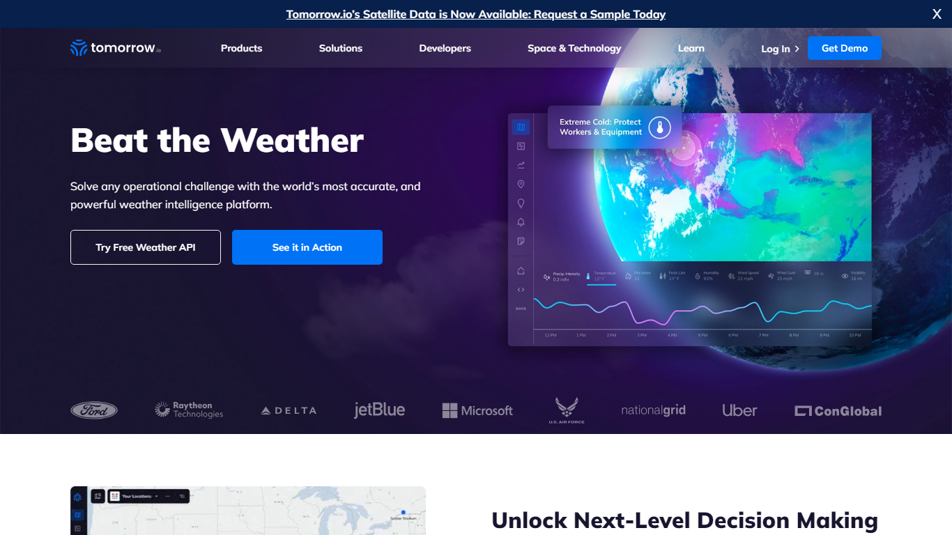Discover the unparalleled capabilities of Tomorrow.io, the World’s Weather Intelligence Platform, offering tailored solutions for both organizations and consumers. Tomorrow.io provides access to a wealth of hyper-accurate weather data and exclusive satellite data products through its innovative Weather Intelligence Platform.