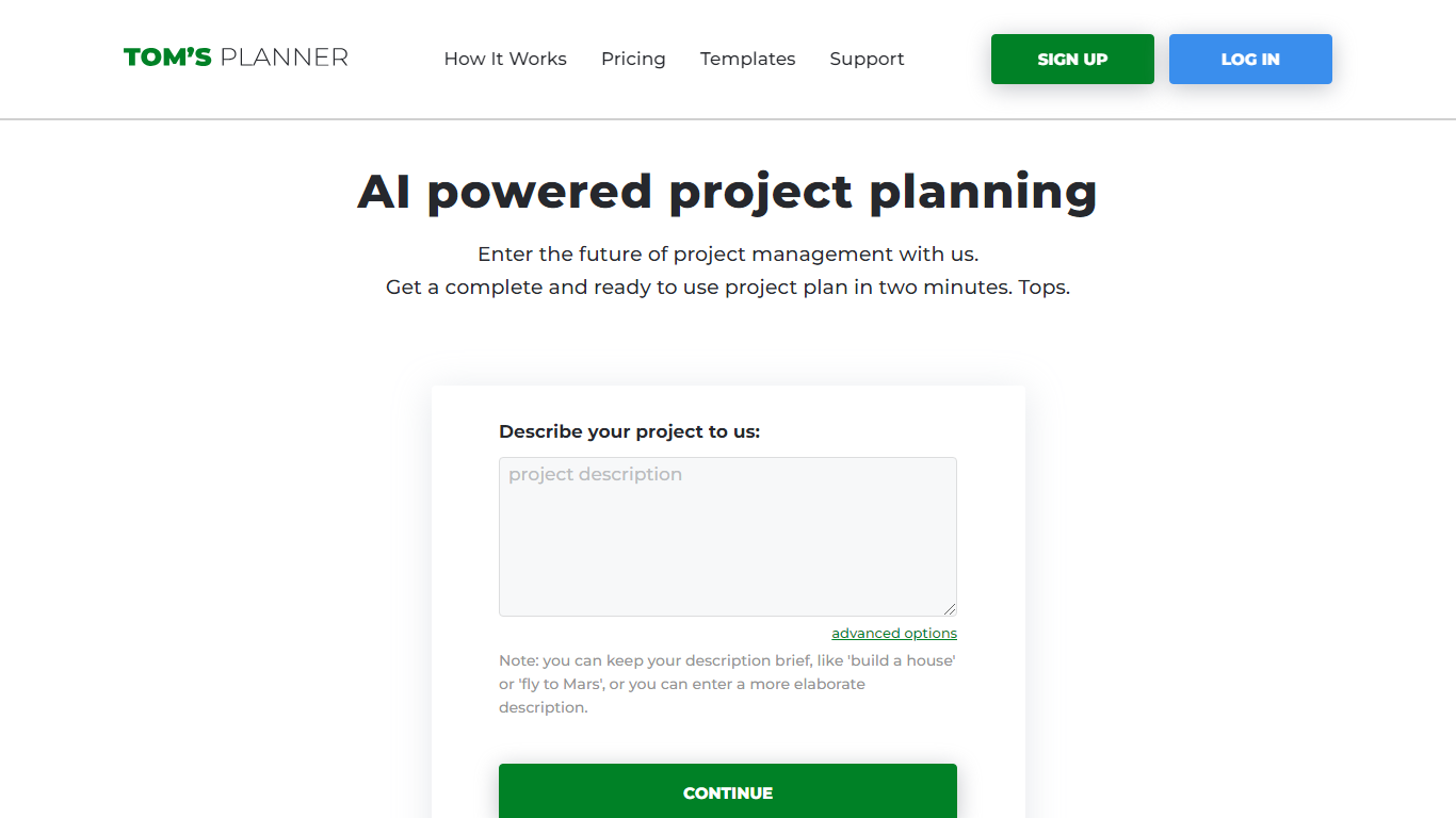 Create efficient project plans in a breeze with Tom’s Planner’s AI-powered Gantt charts. Experience the future of project management by letting AI take the reins—no more manual entry! Just describe your project, and within two minutes, you’ll have a complete, ready-to-use Gantt chart, saving you valuable time and effort. Our system is designed for simplicity: choose your project start date, duration, and other key parameters, and let our intelligent algorithms craft a detailed timeline. Whether for professional projects, current news topics, or just for fun, Tom’s Planner is equipped to handle a variety of planning needs. Embrace the simplicity and precision of automated project planning with us.
