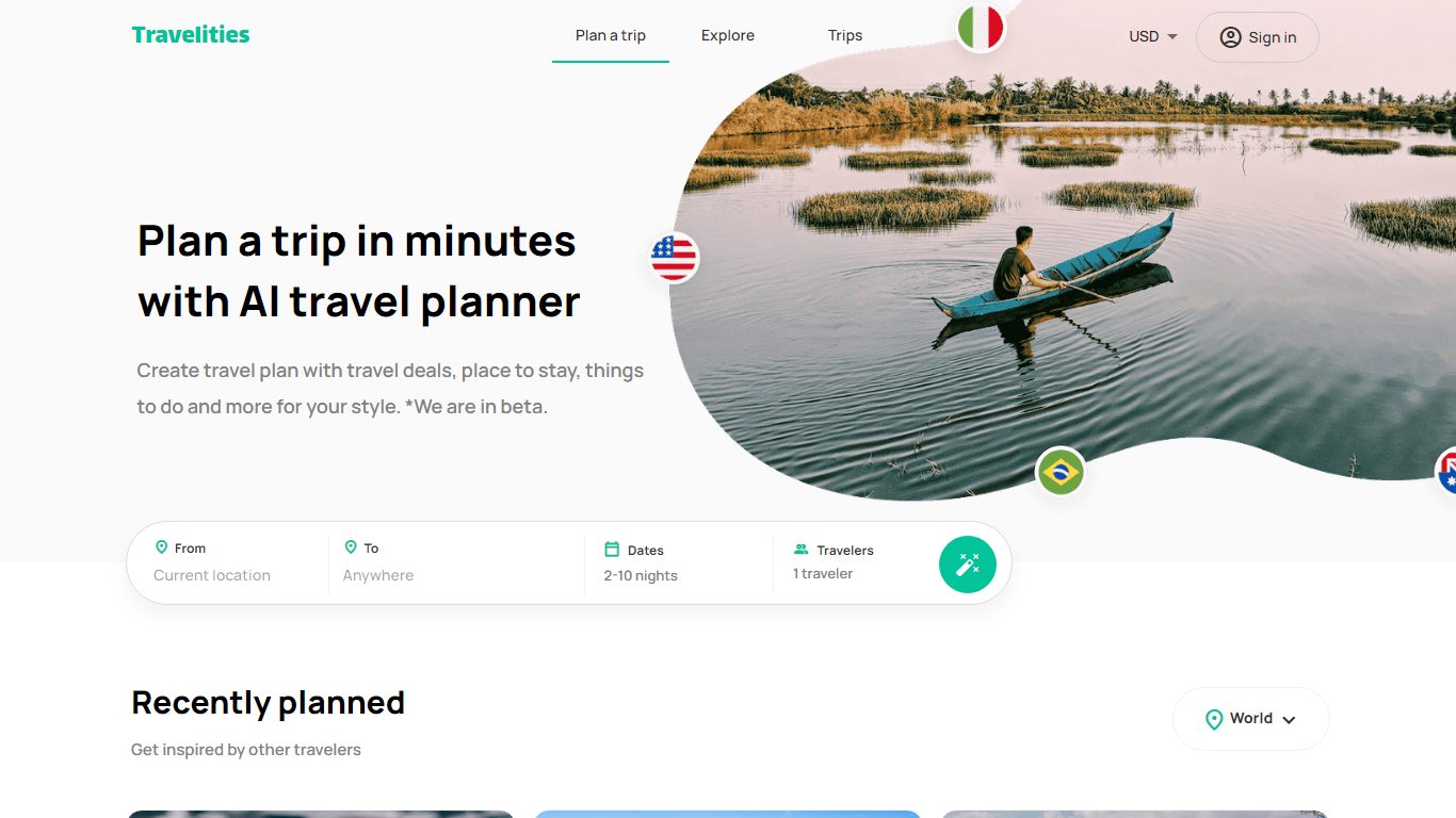 Discover the ease of planning your next adventure with Travelities, your go-to AI travel planner. By leveraging the power of artificial intelligence, we guide you through creating a personalized travel itinerary that suits your preferences and needs. Our intuitive platform simplifies the planning process, helping you save time and enjoy a hassle-free preparation for your upcoming trip. Embrace the future of travel planning with Travelities—the smart way to embark on your next journey.