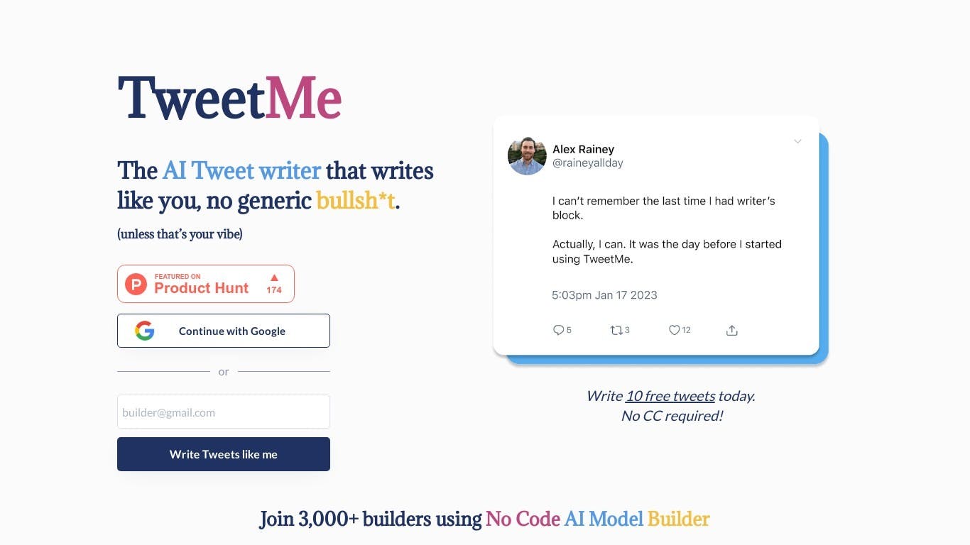 The only AI tweet writer that trains a model on your own tweets, no generic stuff