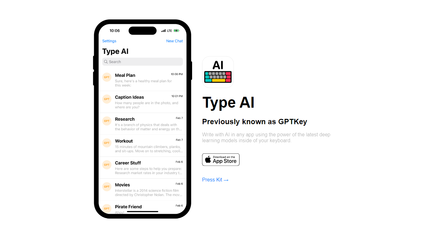 Type AI is an advanced AI keyboard that revolutionizes the way we write in any app. With the power of the latest deep learning models embedded into your keyboard, you can now write with the assistance of AI technology. Whether you’re composing an email, drafting a document, or even chatting with friends on social media, Type AI enhances your writing experience by providing intelligent suggestions, auto-corrections, and predictive text based on the context of your message.