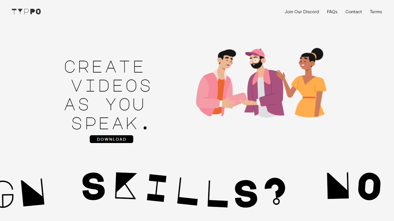 Browse through our Discord, FAQ, and Contact options for support, and stay informed with our Terms of service. Unleash your ideas with TYPPO—where creating professional-looking videos is intuitive, quick, and entirely hassle-free.
