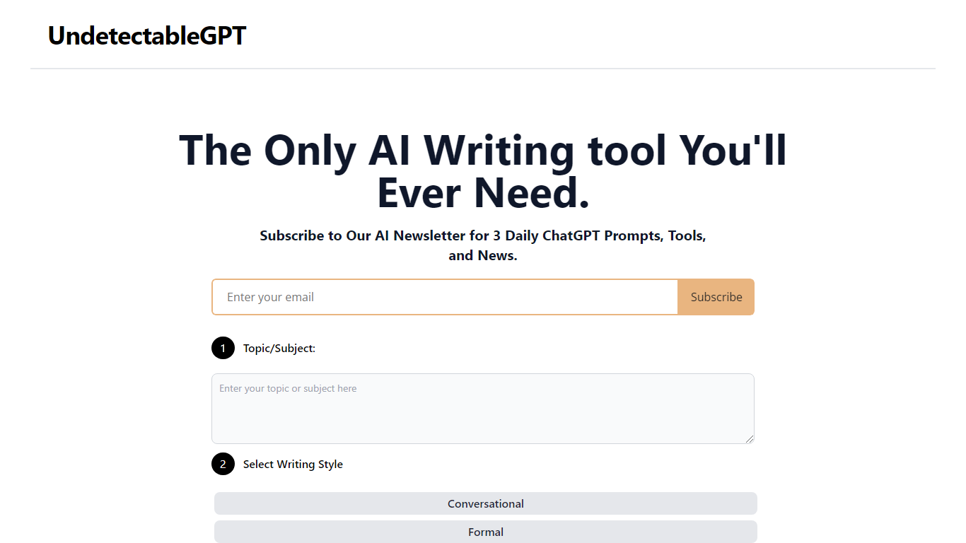 Introducing UndetectableGPT – the ultimate AI Writing tool tailored for your unique content creation needs. Effortlessly subscribe to our engaging AI Newsletter and receive three valuable ChatGPT Prompts, Tools, and News every day to keep you informed and ahead in the ever-evolving AI landscape.