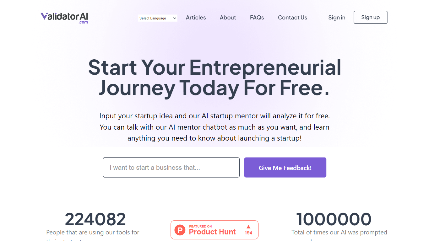 ValidatorAI.com is a comprehensive platform that offers instant help and feedback to entrepreneurs through its startup validator tools. With the power of AI validation, this platform empowers business owners and aspiring entrepreneurs to test and refine their business ideas effectively.