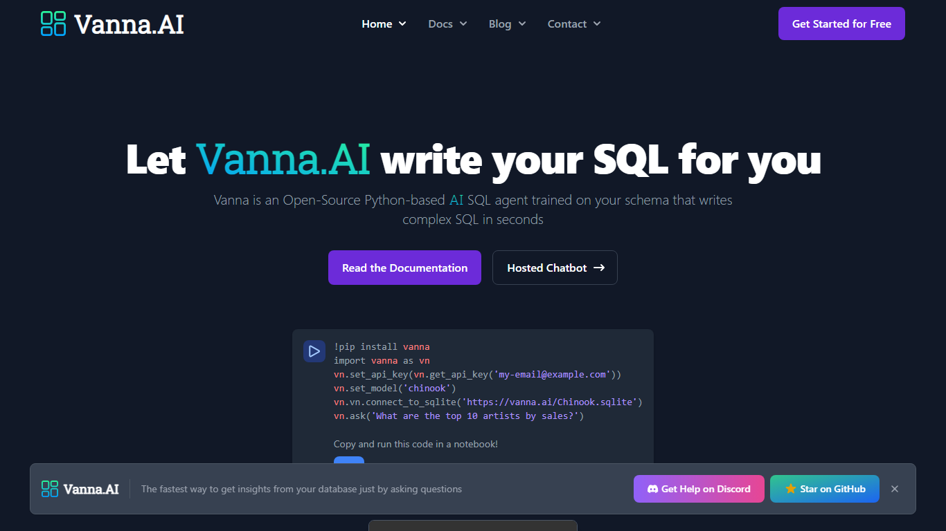 Vanna.AI is an innovative AI-assisted SQL query generation tool that simplifies the process of extracting insights from databases. By leveraging a Python-based open-source SQL agent, Vanna allows users to automatically write complex SQL queries in seconds, just with a simple question. The platform offers high accuracy on complex datasets, ensuring that results are reliable. Vanna is designed with privacy in mind, keeping your database contents secure, as it only requires schemas and queries—never the data itself. With its unique isolated, custom model approach, each user benefits from a tailored model that continuously self-improves over time. Vanna supports multiple databases including Snowflake, BigQuery, and Postgres, and has a flexible frontend integration ranging from Jupyter Notebooks to Slackbots or web apps. For those looking to not only expedite their SQL writing but also preserve data security and enjoy tailored AI learning, Vanna.AI is an outstanding solution.