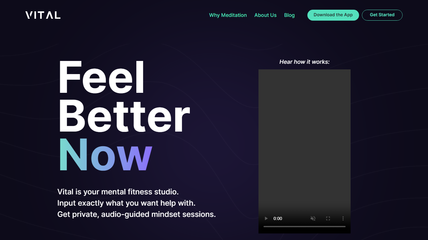 Discover a new era of personalized meditation with Vital—your AI-powered mental fitness studio. Escape the one-size-fits-all approach and experience meditation sessions tailored to your individual needs, challenges, and preferences. Whether you have only a few minutes or an hour, Vital adjusts to your schedule, delivering audio-guided meditations in the voice and language you prefer. Unleash the power of mindfulness with techniques grounded in the latest research and enjoy a range of practices, from traditional mindfulness to soothing sleep stories. Vital offers you a unique opportunity to build resilience, reduce anxiety, and improve focus, all through a seamless interaction with our state-of-the-art digital meditation coach.