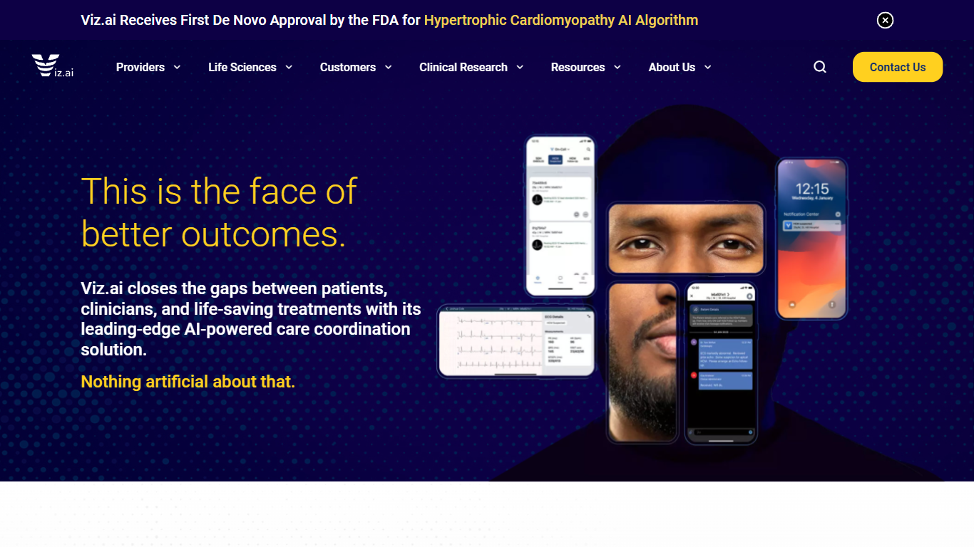Viz.ai is an innovative AI care coordination platform that specializes in disease detection and workflow optimization. With a proven track record, Viz.ai is trusted by over 1,400 hospitals globally.