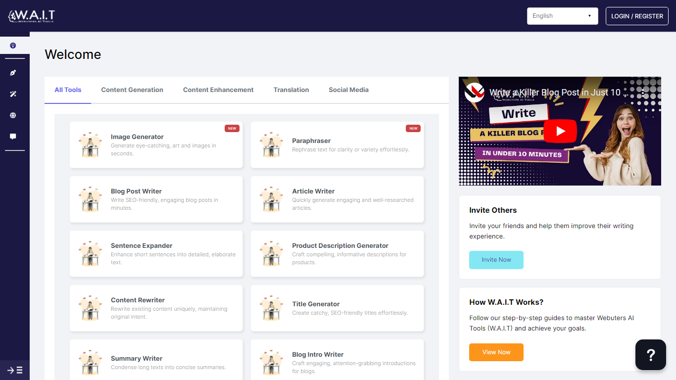Maximize your content’s impact with WAIT – Webuters’ AI Tools, your one-stop destination for crafting high-quality content effortlessly. Our comprehensive suite of tools caters to a myriad of marketing needs, facilitating content creation, enhancement, and dissemination across various languages and platforms.
