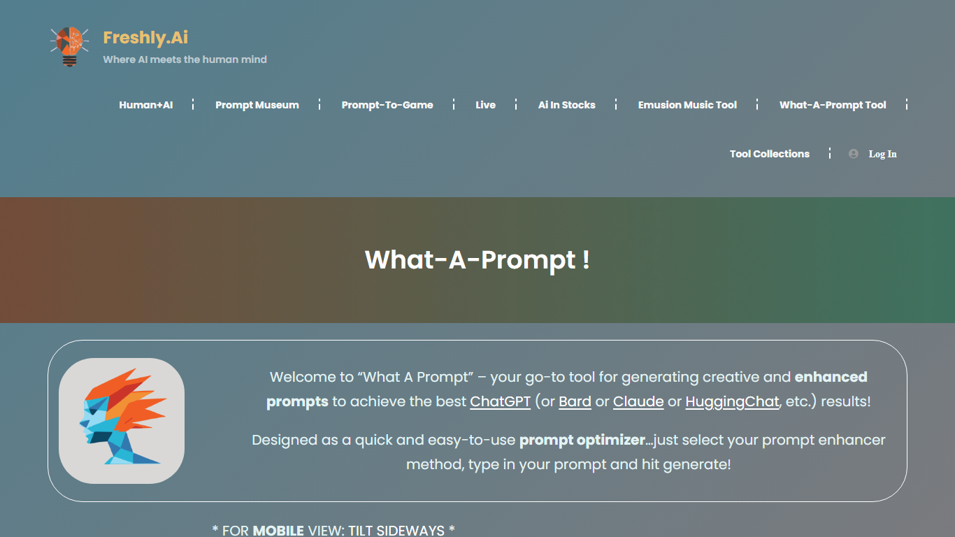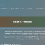 “Discover ‘What A Prompt’ at Freshly.ai, your premier destination for creative and advanced prompt generation designed to enhance your interactions with AI models like ChatGPT, Bard, Claude, HuggingChat, and more. Our prompt optimizer is intuitive and easy to use—simply choose an enhancer method, enter your prompt, and generate improved results. Optimized for both text generation and text-to-image applications, we offer a variety of enhancers including Prompt_Wolfe for a uniquely creative spin, Prompt_Enhancer for detailed and context-rich prompts, and specialized options like Prompt_SciEnhancer for scientifically robust prompts. Explore the possibilities with our Text_Elaborator for richer text and Text_Visions for visually impactful prompts. Our library boasts over 16,150 prompts, serving as a valuable resource for AI enthusiasts and professionals. Join us and engage with our community on our Discord or explore the innovative NRP tech Prompt Museum for a deep dive into the art of prompt engineering.”