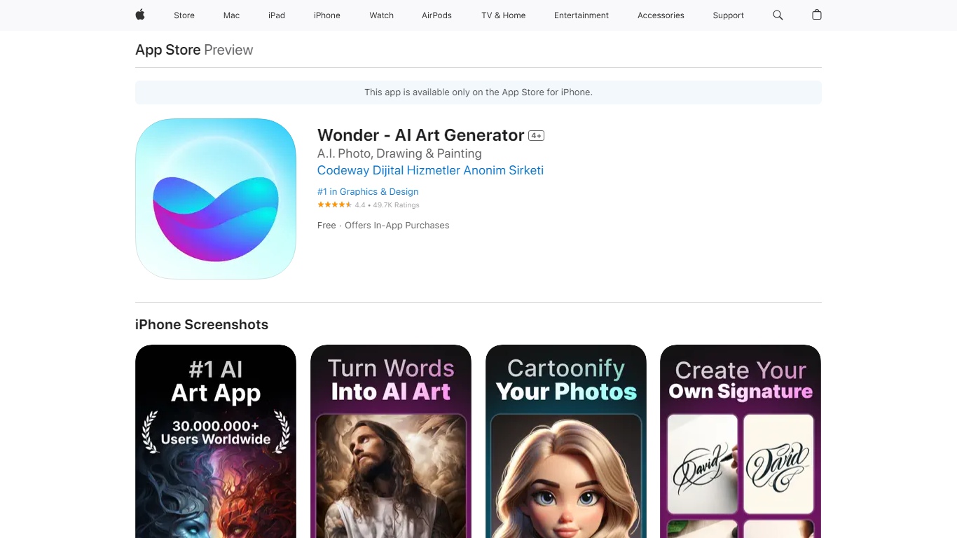 Unleash the power of AI and transform your creative ideas into stunning digital art with the Wonder – AI Art Generator! This innovative app allows you to generate unique artworks simply by entering a prompt and choosing an art style. From “Life Under Sea” to “Shattered Rainbow,” your imagination is the only limit to what you can create. Whether you’re looking to personalize your lockscreen, share something unique on social media, or explore new artistic styles, Wonder makes it all possible with a few taps on your iPhone, iPad, or iPod touch. Experience the ease of becoming an artist with Wonder, and let your creativity flow!
