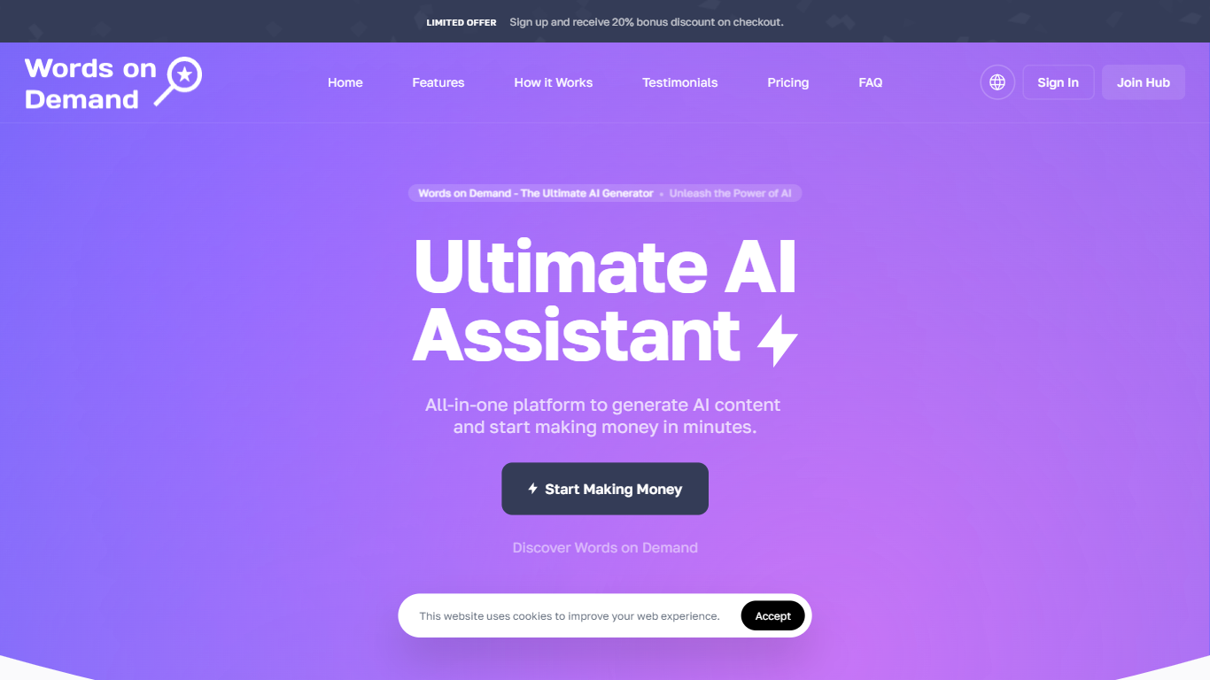 “Words on Demand” is a cutting-edge AI-powered platform designed to revolutionize content creation. With its diverse range of features, it caters to businesses, writers, and digital marketers, offering an all-in-one solution for generating text, images, code, and more.