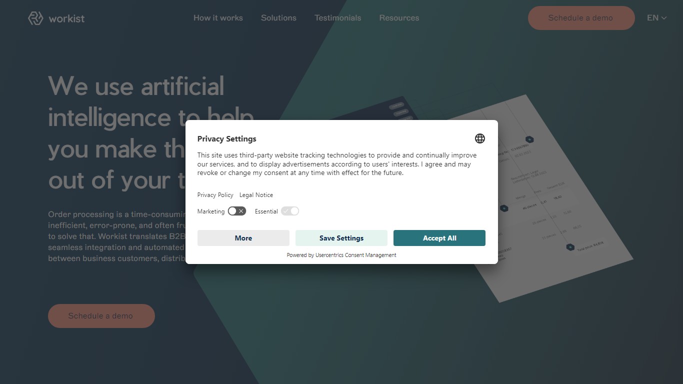 Transform the way you process documents with Workist, an AI-driven solution that automates B2B transactions for seamless integration between business customers, distributors, and suppliers. Embrace unmatched document understanding with over 1 million successfully processed documents informing Workist’s AI, delivering unparalleled automation rates that drastically cut costs and time. With a 90% time saving, Workist guarantees a rapid ROI — an end-to-end solution that instantly integrates into existing systems using state-of-the-art EDI technology. Say goodbye to manual errors; Workist’s master data matching detects and corrects incorrect orders, thereby reducing error rates by 80% and freeing up time for customer service. Experience the efficiency of automation with Workist and revamp how you conduct business.