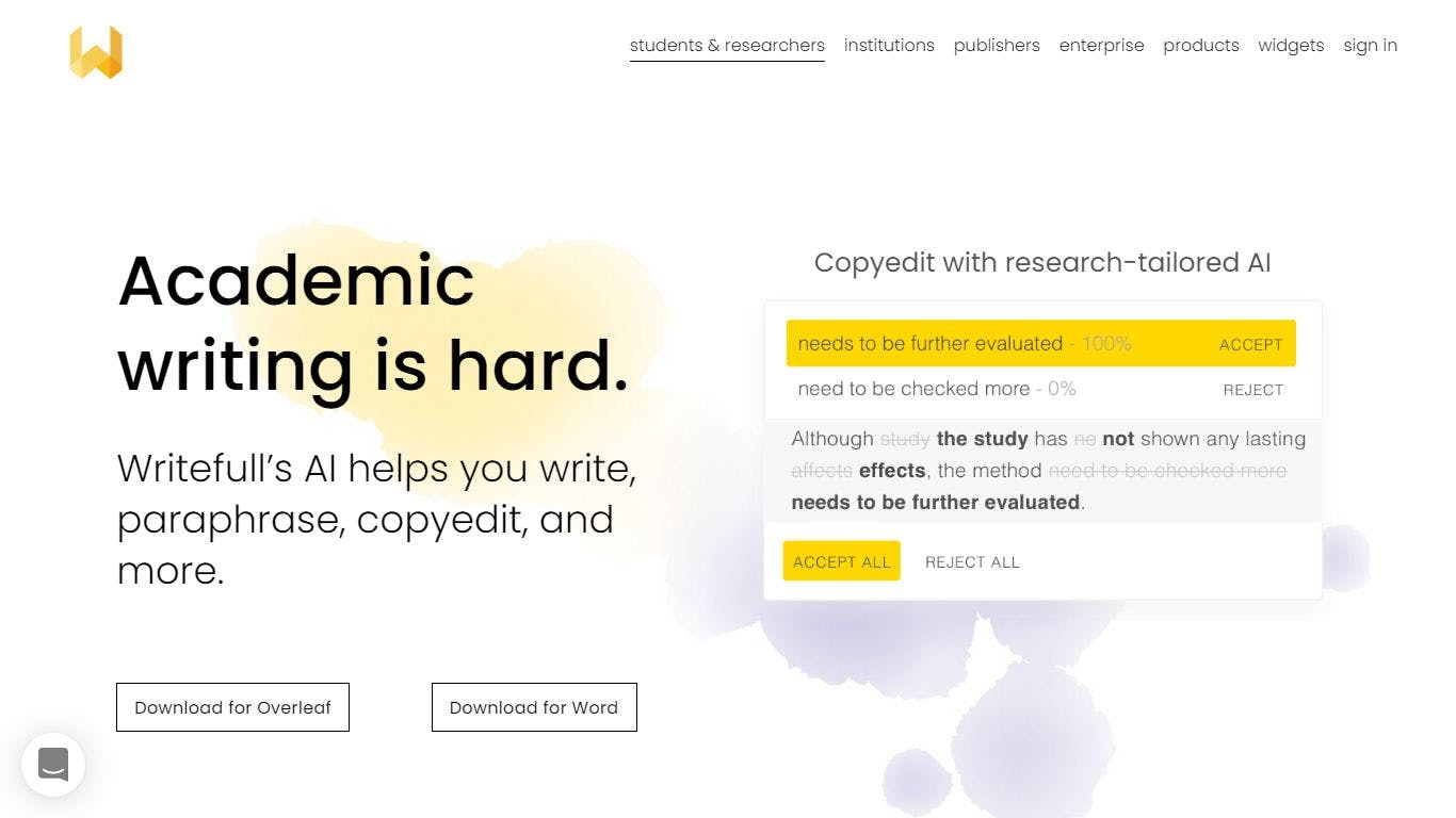 Writefull is automated writing and proofreading for academics, using the