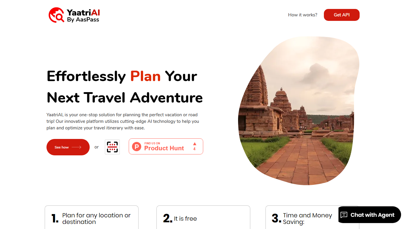Discover effortless travel planning with YaatriAI by AasPass InfoTech Company, an exceptional platform designed to revolutionize your travel experiences. Utilizing advanced artificial intelligence, YaatriAI offers personalized recommendations for accommodations, activities, and transportation tailored to your unique preferences and budget. Whether you’re embarking on a solo adventure or coordinating a family vacation, our platform ensures a stress-free planning process, saving you time and money. With no sign-up charges, YaatriAI is committed to enhancing your travels, making it the ultimate travel companion for adventurers and explorers. Embrace a new era of travel with YaatriAI, and let your journey begin!
