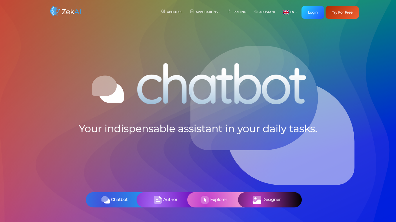 Welcome to ZekAI, a versatile platform offering a suite of AI-powered tools designed to cater to various professional needs. Dive into our **Applications** section, where you can find an AI **Chatbot** capable of engaging in dynamic conversations, an innovative **Author** tool to assist in writing tasks, a creative **Designer** feature for visual content creation, and an **Explorer** to help you navigate through large datasets or content repositories effortlessly.